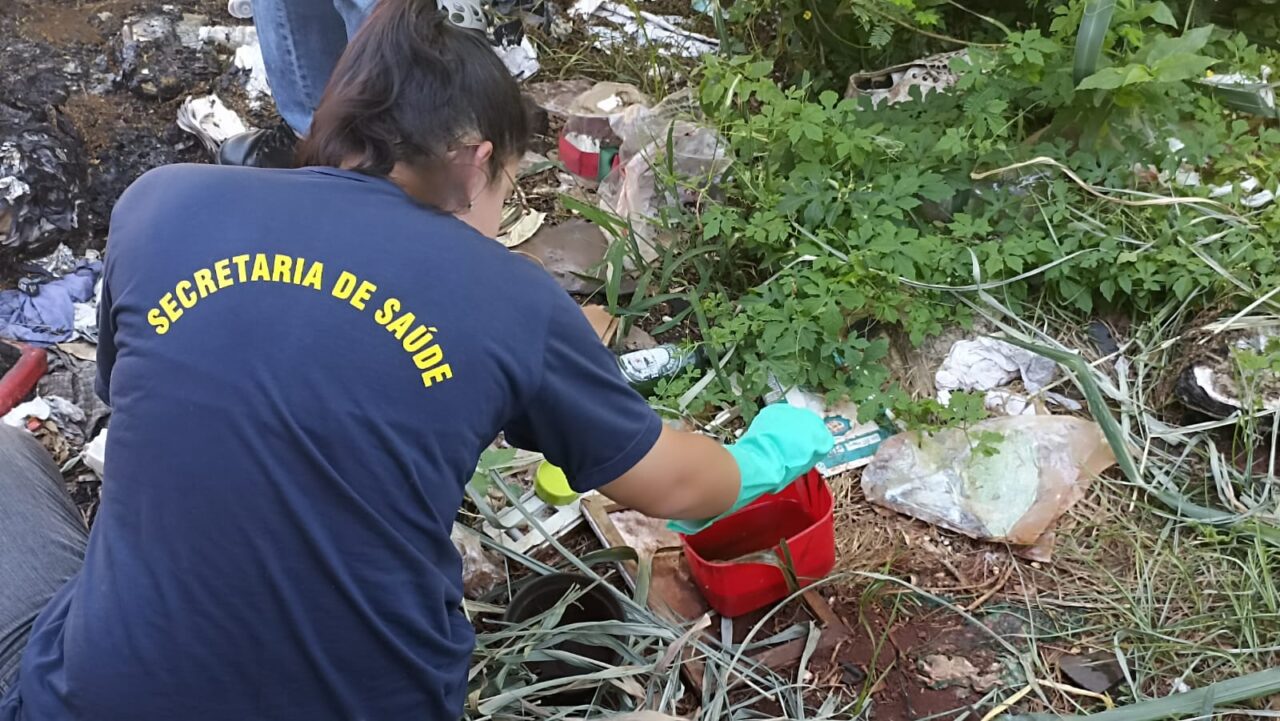Uma propriedade com grande acúmulo de lixo e entulhos invadida foi alvo de uma ação da Polícia Civil e do setor de fiscalização contra a dengue da Prefeitura no Jardim Tabaete, em Maringá.