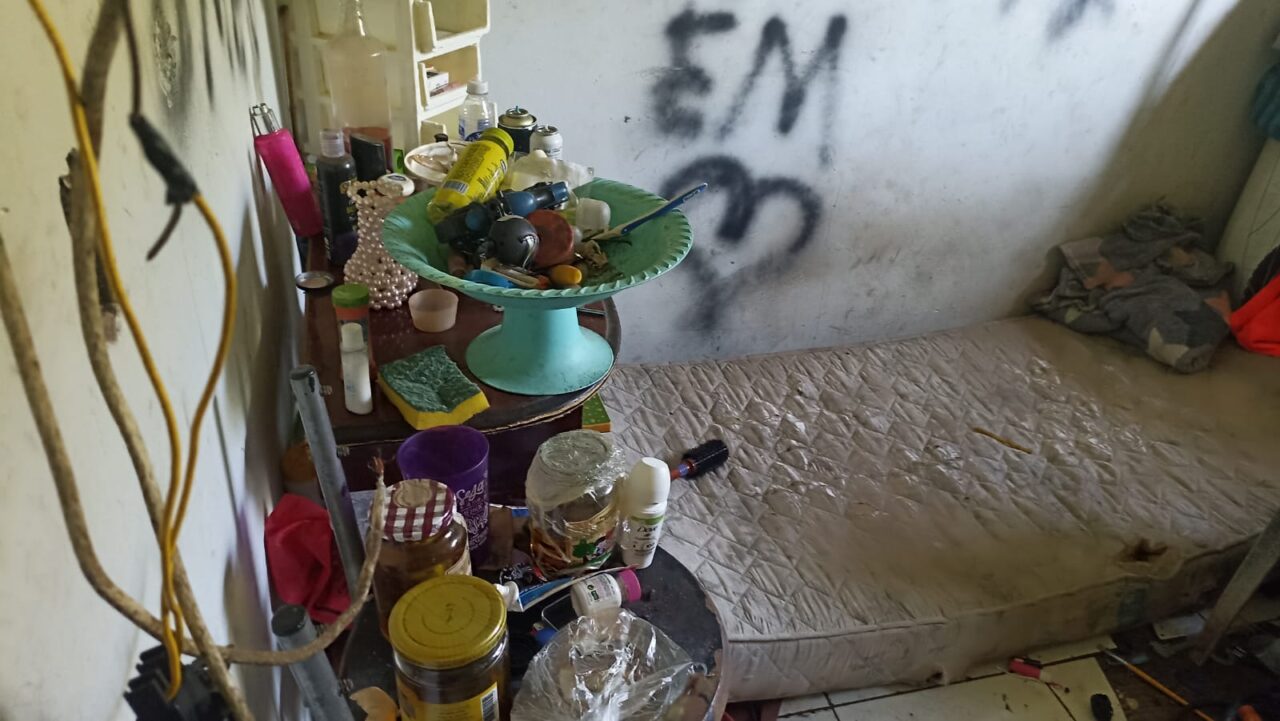 Segundo a polícia, o local foi denunciado como ponto de tráfico e uso de entorpecentes. Ninguém estava na casa quando as equipes chegaram. O que os agentes encontraram foi um lugar em situação crítica, com muito lixo, focos de proliferação do mosquito da dengue e mato alto.