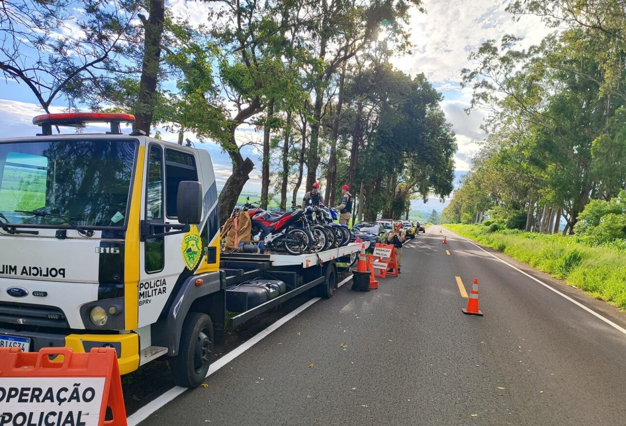 Fiscalização policial apreende 7 motocicletas na PR-458, na região de Maringá