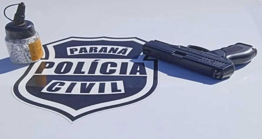 O delegado Carlos Diego Paravidino Machado, de Jandaia do Sul, afirma que os menores recortaram a ponta laranja da Airsoft para garantir mais verossimilhança à ameaça.