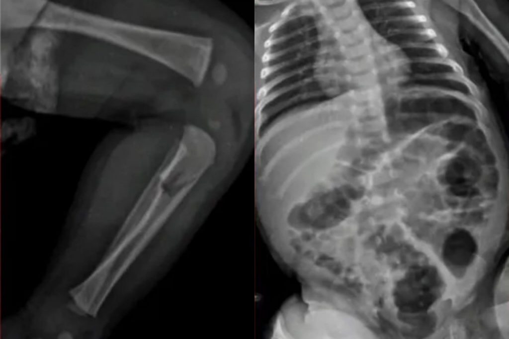 Os profissionais de saúde submeterem o bebê a exames de raio-x e descobriram que o menino sofreu lesões ósseas em uma das tíbias, em um antebraço e também nas costelas. Além disso, havia hematomas e escoriações pelo corpo.