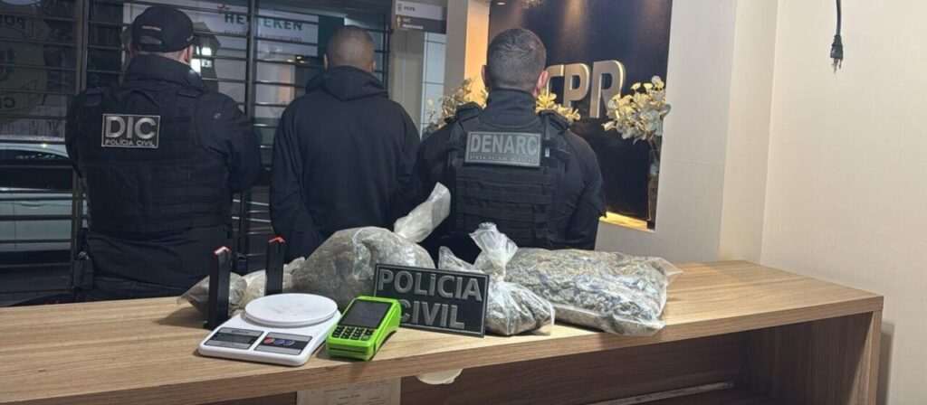 “A Denarc de Maringá, em apoio à Denarc de Santa Catarina, deu cumprimento a mandados de busca e prisão na cidade de Campo Mourão. No local, prendemos um indivíduo que era alvo dos mandados e também encontramos um segundo suspeito. Durante a ação, apreendemos quase dois quilos de uma droga conhecida como capulho, de alto valor de mercado. Ambos receberam voz de prisão e foram conduzidos à delegacia de Campo Mourão, onde foi lavrado o auto de prisão em flagrante”, diz.