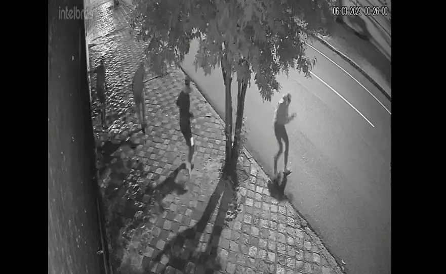 Nas imagens, é possível observar que o policial conversava com uma mulher, por volta das 00h20, quando os assaltantes armados primeiro passam por ele. Acreditando que os dois seriam ‘alvos fáceis’, os criminosos retornam já apontando a arma de fogo. Com a rápida reação do policial, os quatro tentam correr, mas um é baleado e acaba morrendo.