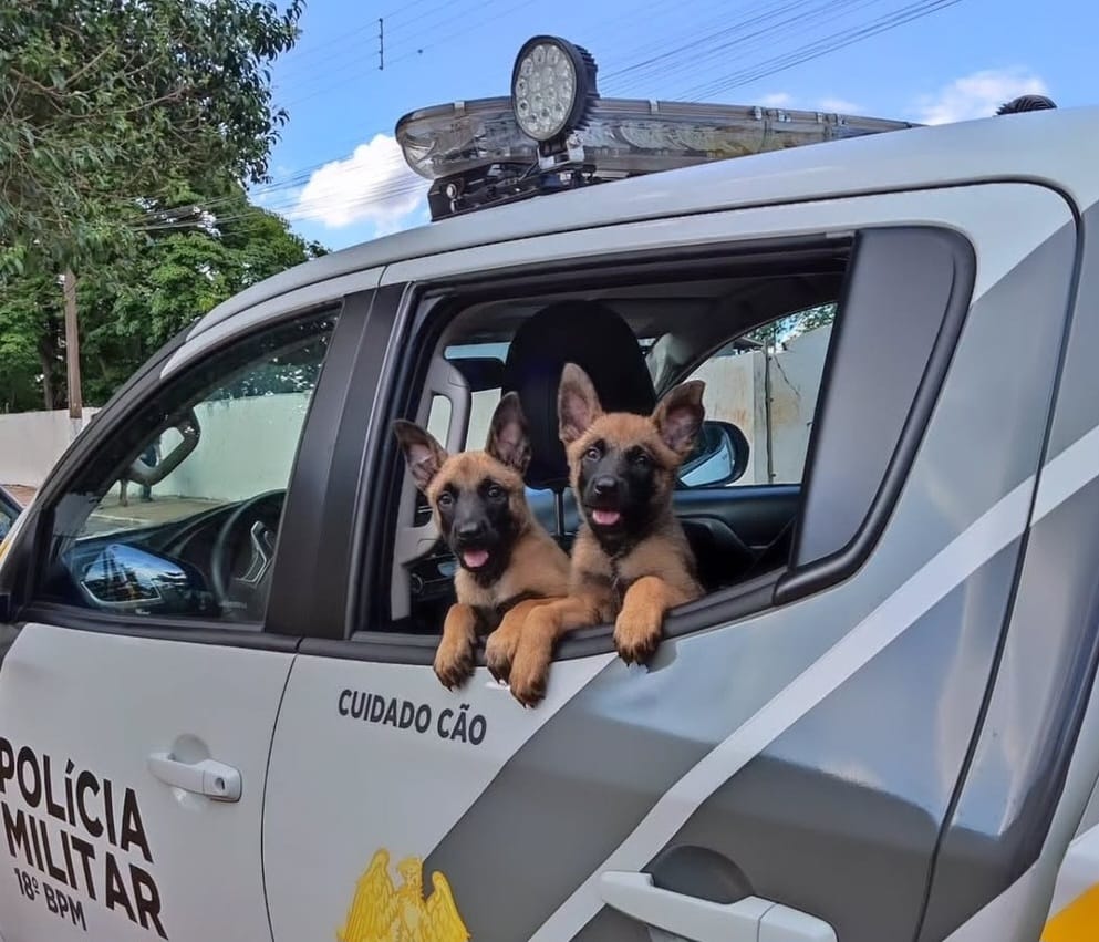 Dois filhotes da raça pastor-belga malinois passaram a integrar o quadro de futuros cães de serviço da Polícia Militar do Paraná (PMPR). Batizados de Ártemis e Argos, eles chegaram recentemente ao 18º Batalhão de Polícia Militar, onde começaram o processo de formação e sociabilização que antecede o trabalho operacional.