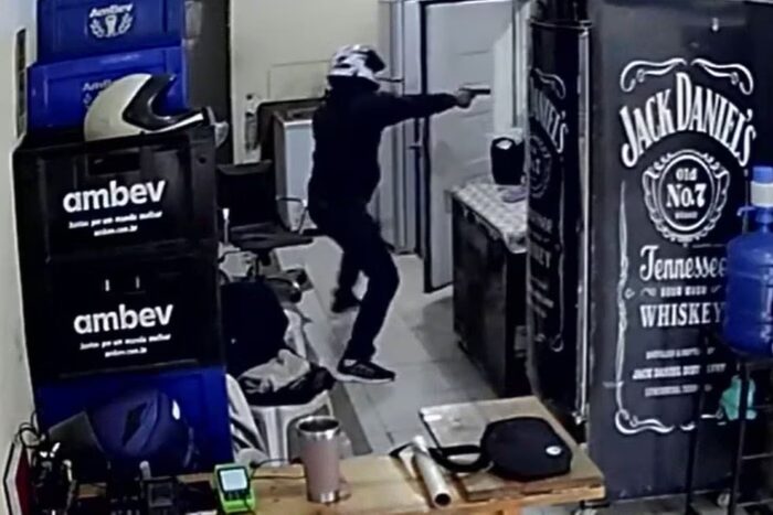 Uma câmera de segurança registrou o crime. Havia três homens dentro do estabelecimento, quando dois suspeitos chegaram em uma moto. O garupa desceu e fez um disparo ainda na rua. Nesse momento, dois entregadores entram em uma câmara fria, enquanto o outro funcionário se abaixa atrás do caixa.