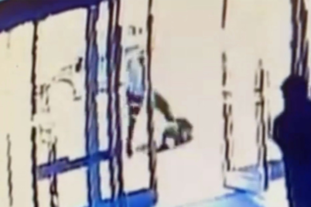 Imagens agressão fornecidas pela polícia mostram o suspeito chutando a vítima para o chão e depois desferindo vários outros chutes enquanto ela estava caída na calçada.