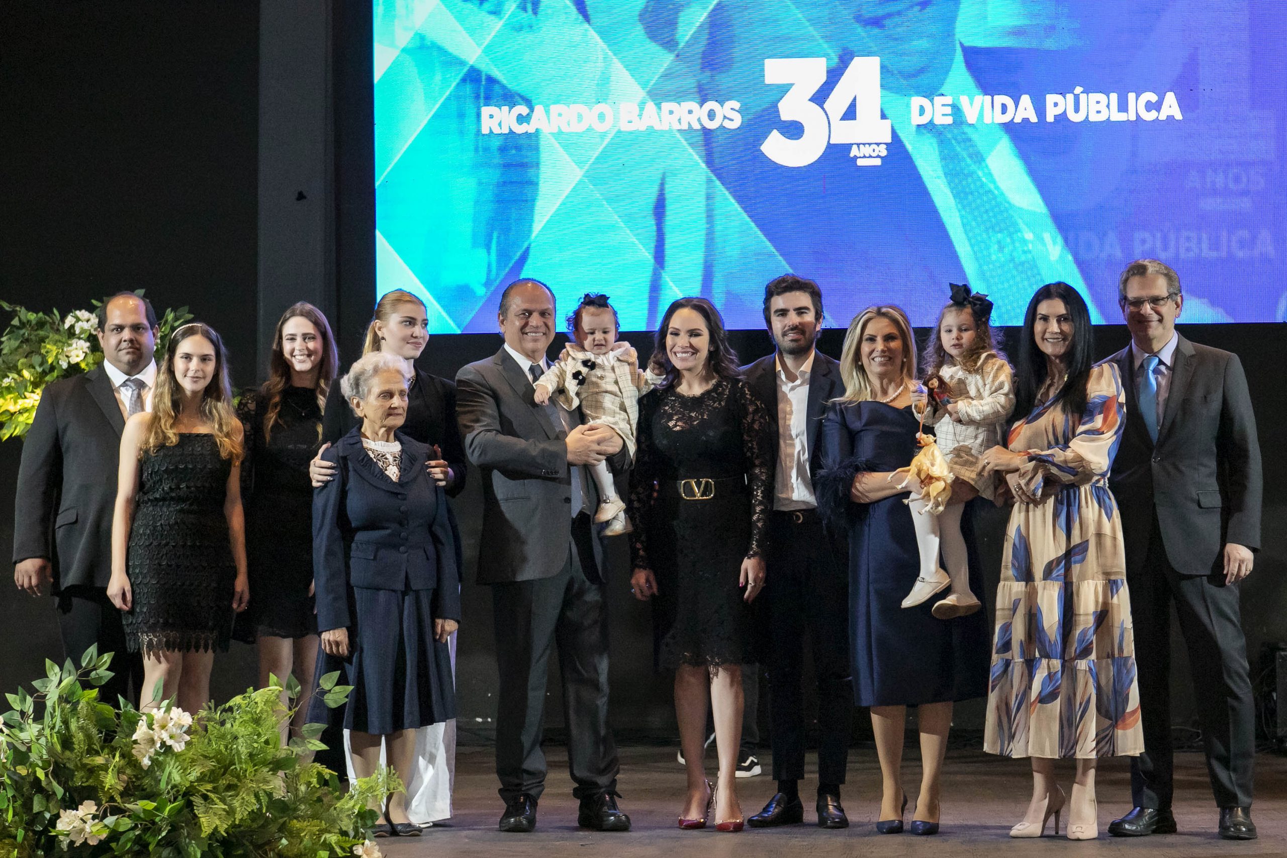 Maringaenses e moradores de pelo menos três regiões do Estado participaram da comemoração dos 34 anos de vida pública de Ricardo Barros, incluindo autoridades políticas, empresários e lideranças de cerca de 200 municípios paranaenses, base de atuação do parlamentar que, atualmente, também responde como líder do Governo Jair Bolsonaro na Câmara dos Deputados.