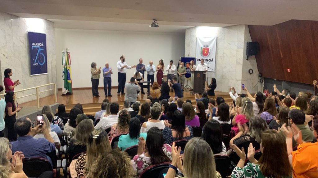 A posse da nova secretária de Educação de Maringá, Nayara Caruzzo, foi realizada na manhã desta segunda-feira, 21. O auditório Hélio Moreira estava lotado com secretários, servidores e diretores de escolas municipais.