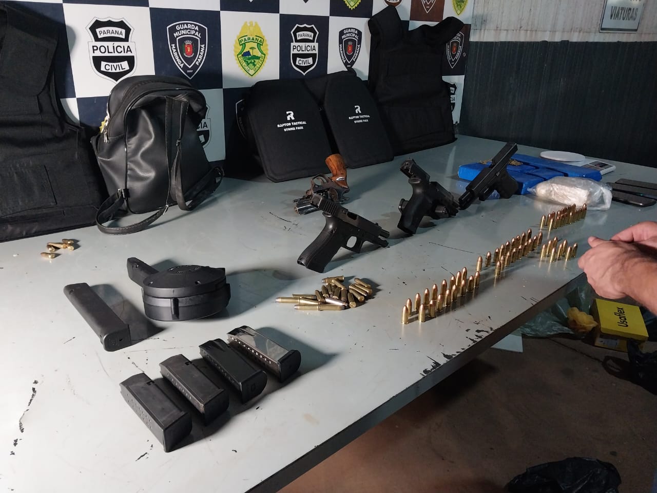 Uma quadrilha, que de acordo com a Polícia Militar está envolvida em tentativas e homicídios cometidos em Maringá nos últimos dias, foi presa nesta terça-feira, 4. A ação do Choque da PM prendeu em três endereços, quatro homens e apreendeu armas, munições, drogas e um veículo.