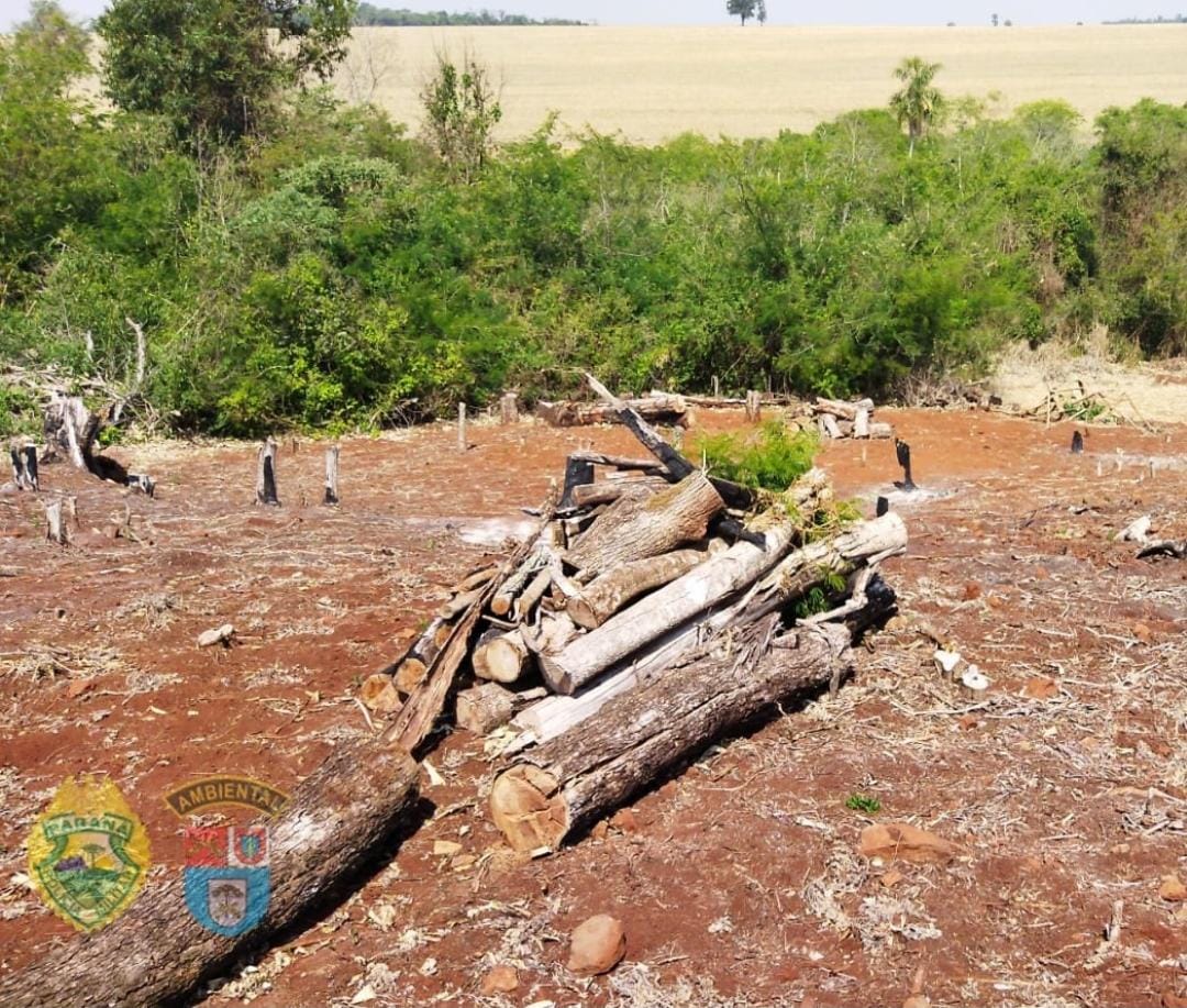 De acordo com a polícia, as equipes identificaram o trecho desmatado durante um patrulhamento feito com apoio do Batalhão de Operações Aéreas. A área, em Peabiru, tinha danos significativos, conforme a corporação.