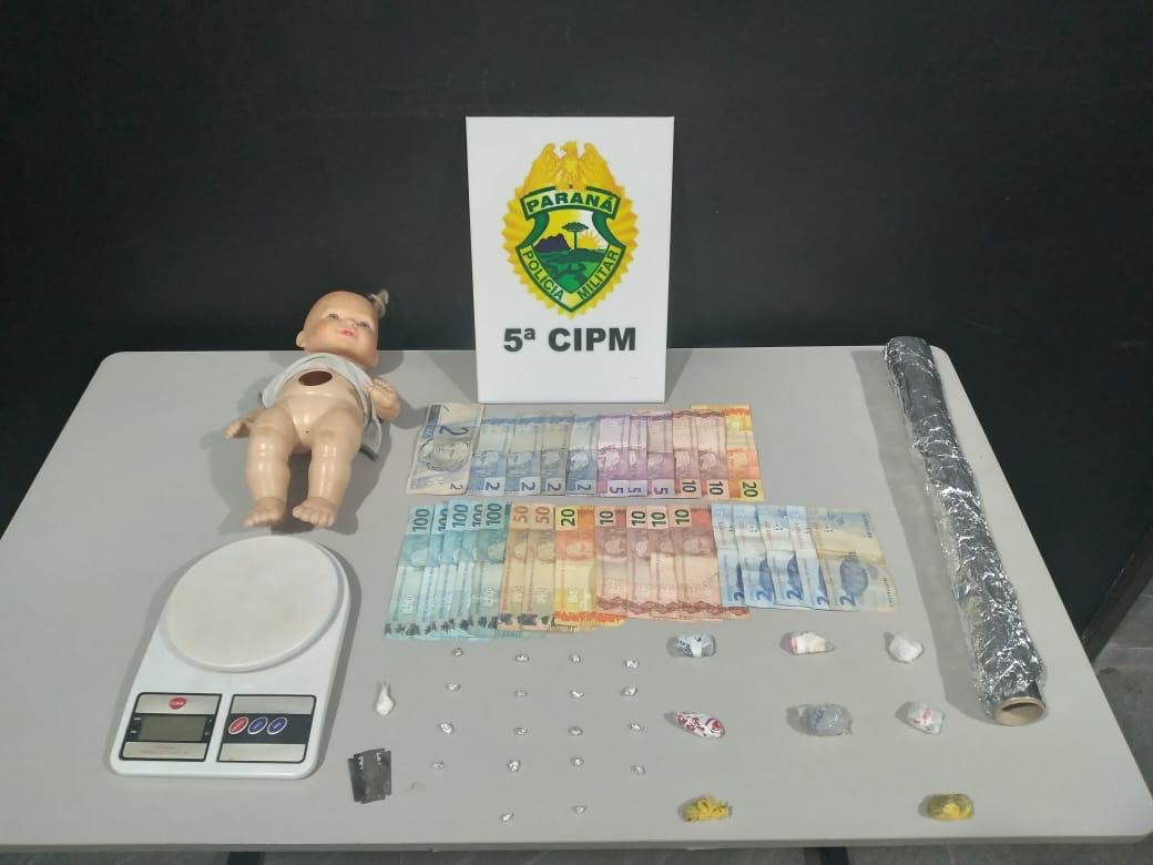 Um jovem foi preso e um adolescente apreendido após serem flagrados com drogas em uma casa em São Tomé (a 104 quilômetros de Maringá), cidade da região de Cianorte. Os dois são suspeitos de tráfico de drogas e, segundo a Polícia Militar (PM), as equipes encontraram porções de maconha escondidas dentro de uma boneca que estava no local.