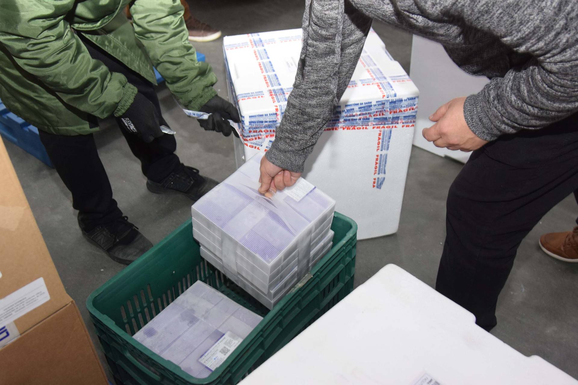 As vacinas da Pfizer desembarcaram no Aeroporto Afonso Pena, em São José dos Pinhais, e foram encaminhas para o Centro de Medicamentos do Paraná (Cemepar), em Curitiba. A distribuição está programada para esta terça-feira, 10.